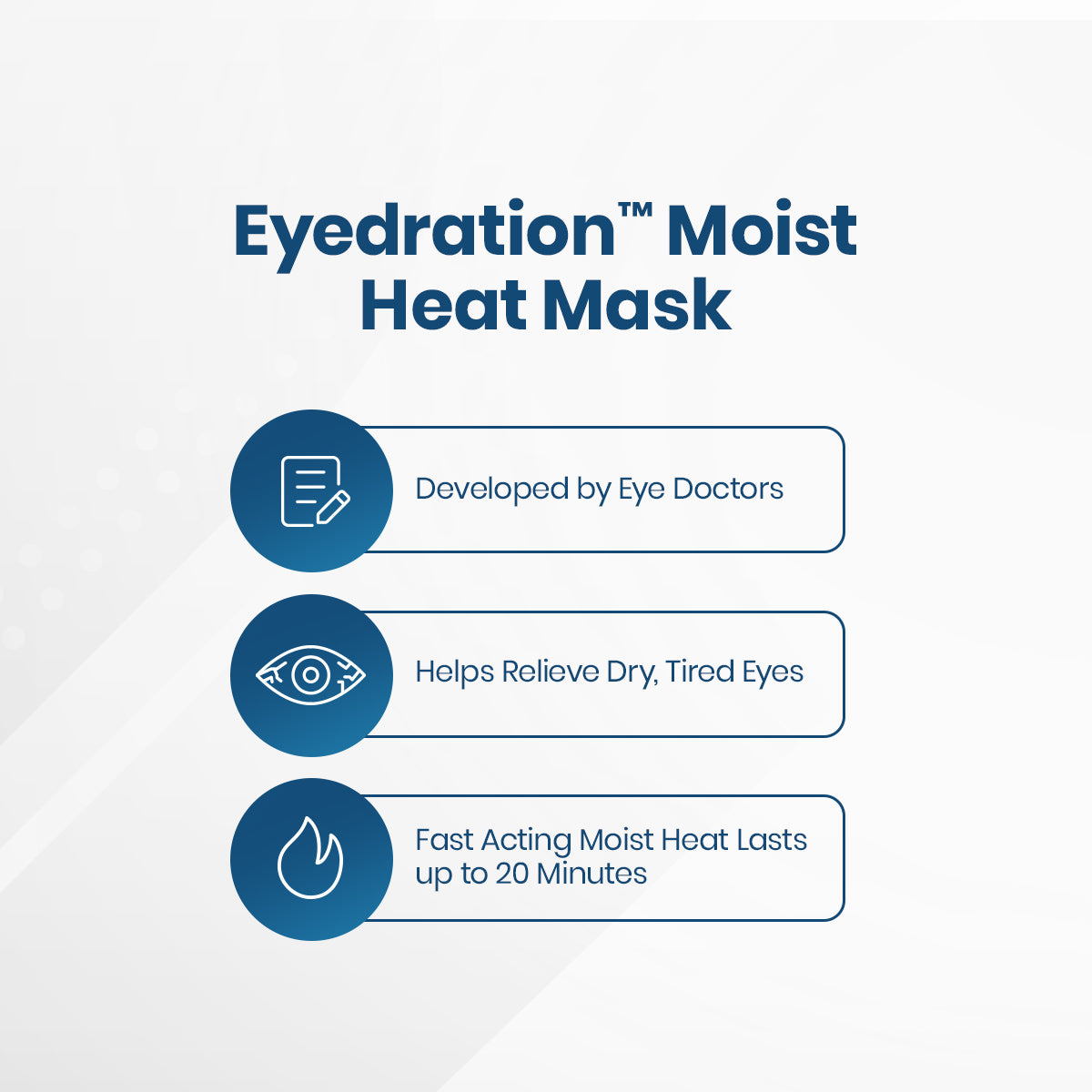Treating dry, irritated eyes has never been more convenient. Eyedration heats quickly and stays warm to unlock your eyes' natural hydration and help get the moisture your eyes need for comfort and sharper vision.